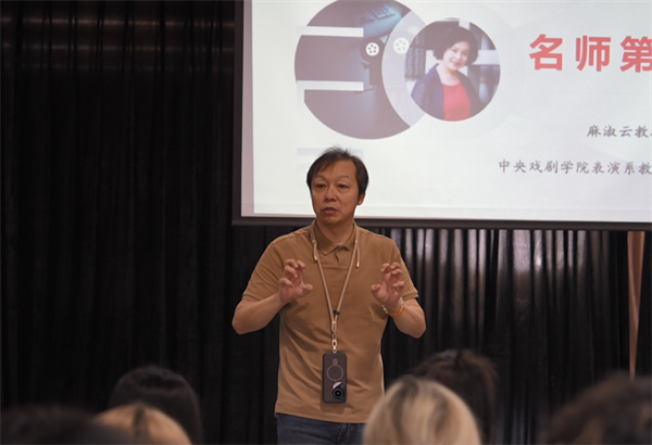 麻書云教授用她自己的經歷講述她眼中的表演:表演作為一門綜合性很強的學科,是“聲樂”“臺詞”“形體”“表演”等基礎訓練的綜合呈現,每一環節都需要嚴謹完成,最終塑造出一個 叫做“角色”的合格“產品”。麻書云老師表示,演員對文本的熟悉程度、對對手戲演員臺詞的熟悉程度,會影響到演員對劇目的整體把控性;而”形體“課的一以貫之,則能夠幫助演員在實踐過程中,用形體塑造人物,很好地靠近角色。麻老師表示,醇熟的”演技“一定是建立在 日復一日的練習中,需要不斷反復練習才能掌握才能達到能夠在舞臺上、劇組中呈現出足夠的專業性。課后學生表示受益匪淺。
