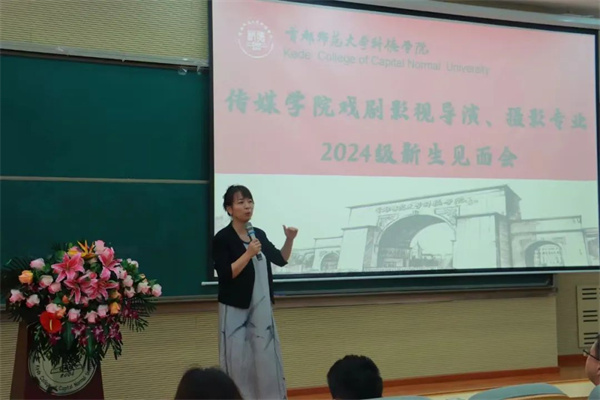 董麗娜老師在 2024 級播音與主持藝術專業的第一課上用她美妙的聲音為大一新生帶來了大學第一課。她對學生們說“生命也許會有缺憾,但自身的拼搏和社會的進步彌補了我們的缺憾,我希望以自己的方式奉獻社會,用我的聲音描述世界的光明。”視障女孩董麗娜在追逐夢想的道路上執著前行,年少時她不甘心自己的人生被早早定義,她想要有更多的選擇機會。于是,她通過各種方法,尋找突破自我的道路。她不僅如愿成為中國傳媒大學播音主持專業的首位盲人研究生,還成為公益機構的一名教師,幫助更多視障人士學習播音。她用她的真實故事引領著傳媒學院播音專業的同學們,打開他們的藝大門。