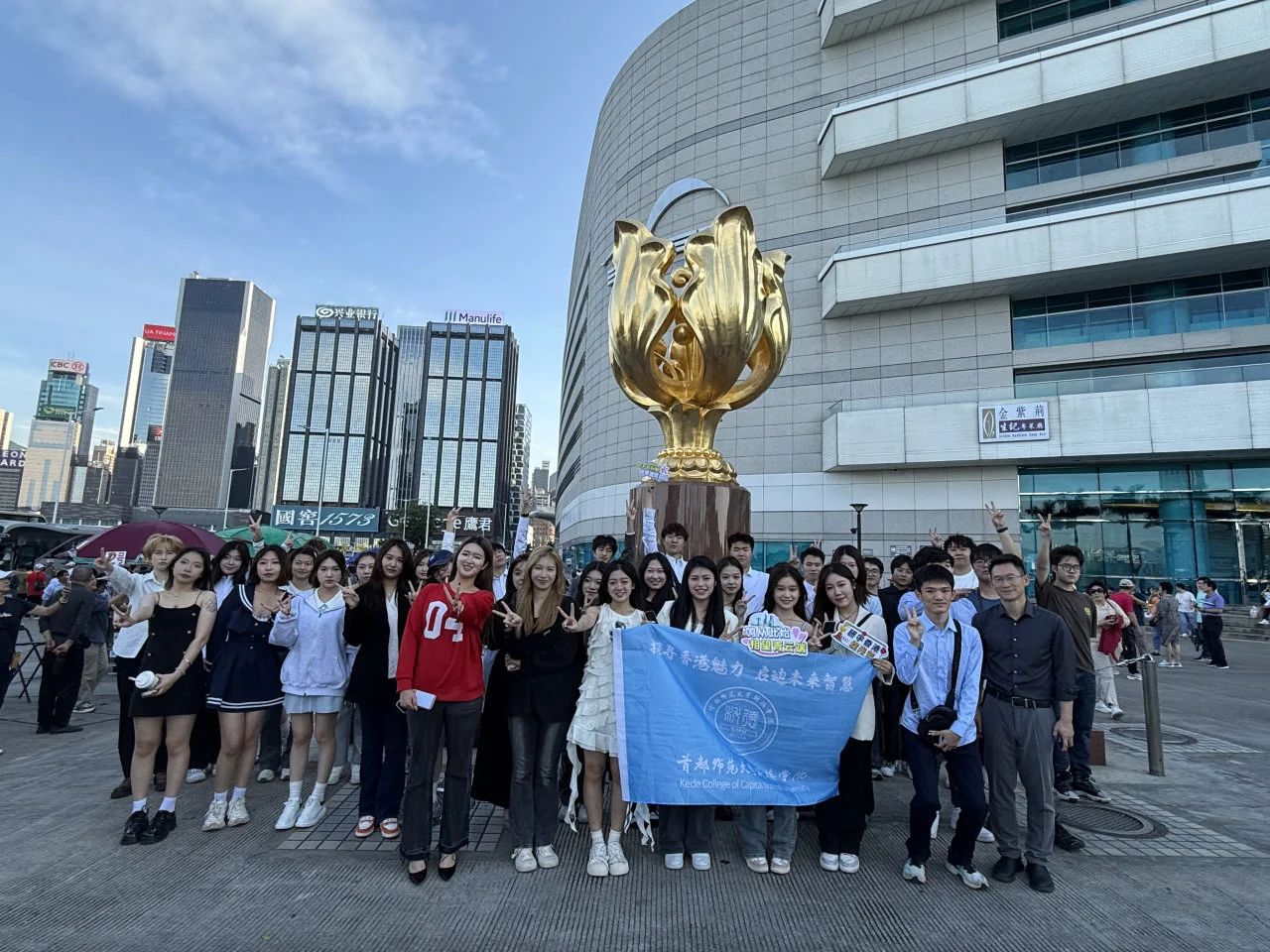 隨后,一行人來到了聞名遐邇的星光大道,這里仿佛是明星閃耀的璀璨銀河,地面上鑲嵌的眾多明星手印和紀念牌,讓人仿佛能觸摸到那些熠熠生輝的星光歲月,回憶起一部部經典的影視作品和一個個令人難忘的明星形象。接著,大家漫步至紫荊廣場,廣場上莊嚴肅穆的氛圍撲面而來,那象征著香港回歸的紫荊花雕塑,在陽光下熠熠生輝,讓人心中涌起一股莊重之感,深刻體會到歷史的厚重與意義。而廉政公署,雖只能遠觀,但那獨特的建筑風格和莊重的外觀,不禁令人感受到一種威嚴與公正的氣息。