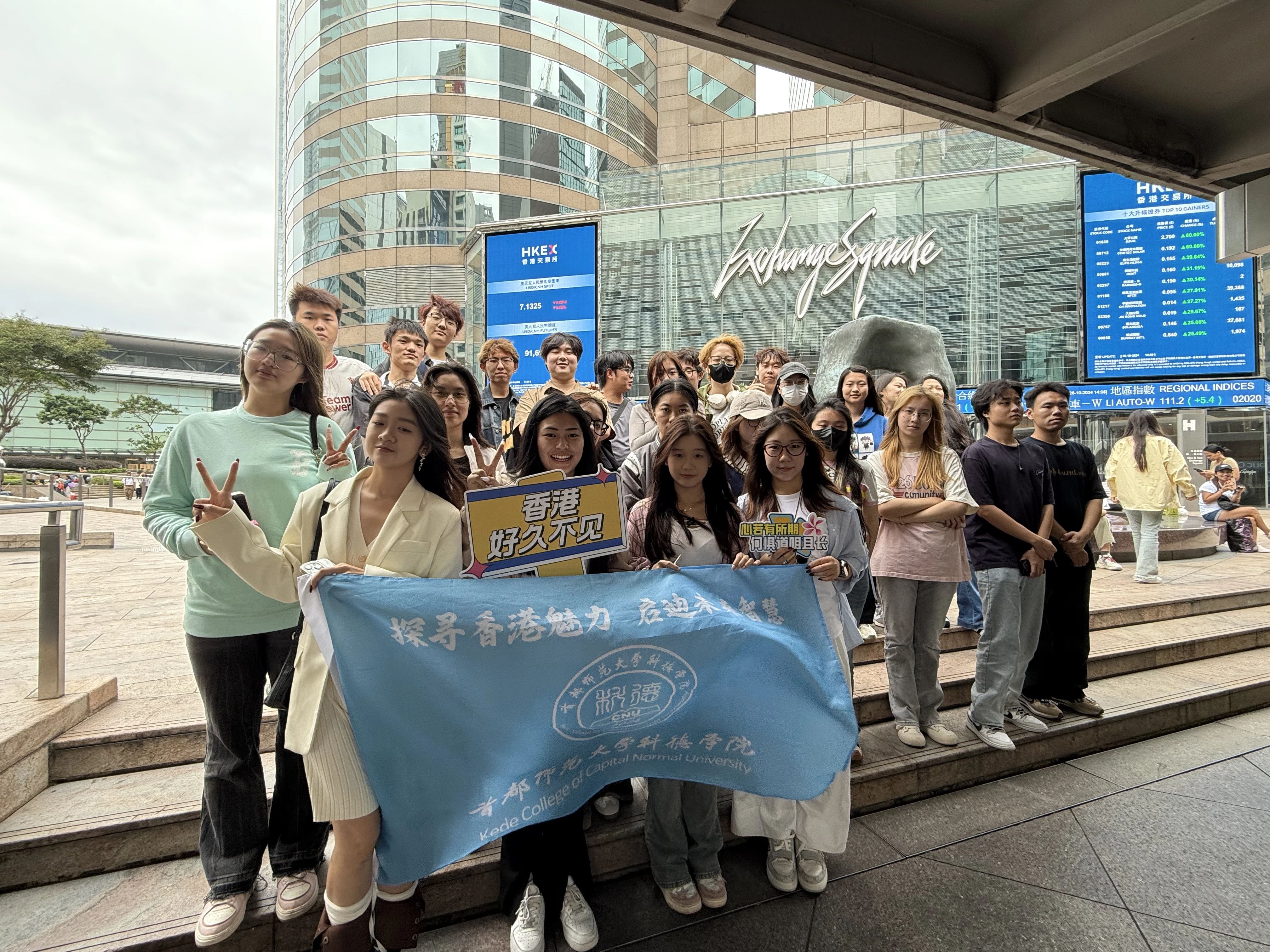 接著,大家前往具有重要金融象征意義的證券交易所進行打卡。當站在證券交易所那宏偉的建筑前,便能立刻感受到香港作為國際金融中心的強大氣場。這種親身感受香港金融脈動的體驗,無疑為大家的這次行程增添了一份獨特而深刻的記憶。