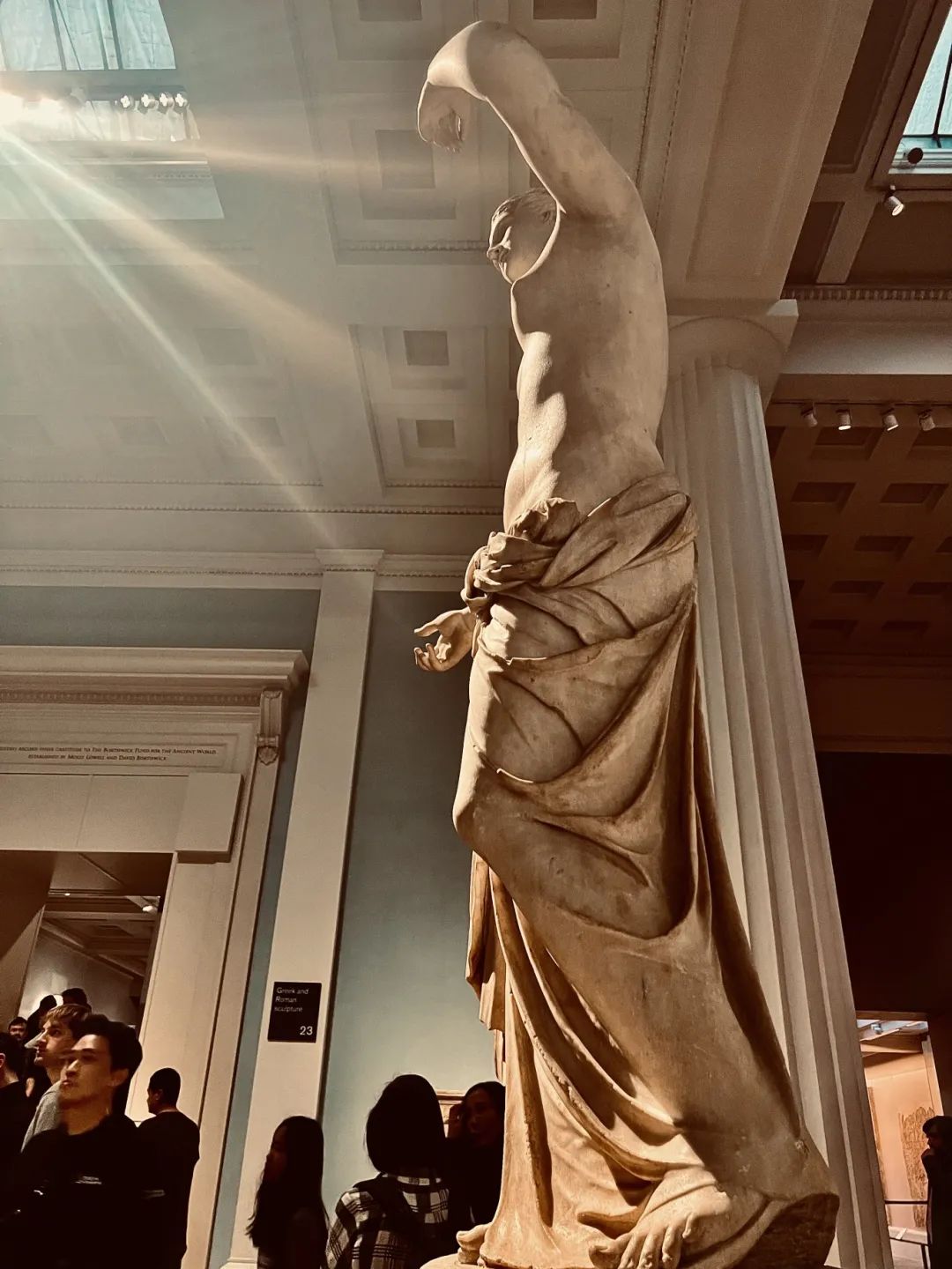 踱步至古希臘展廳的帕特農神廟雕塑前,其震撼之感令人驚嘆。這些雕塑充分展現了古希臘人對人體美的崇尚以及對藝術的極致追求,堪稱古希臘文明的杰出代表。注視著這些雕塑,學子們不禁憶起那個充滿智慧和創造力的古希臘時代,彼時的藝術家們用雙手塑造出了永恒的經典。