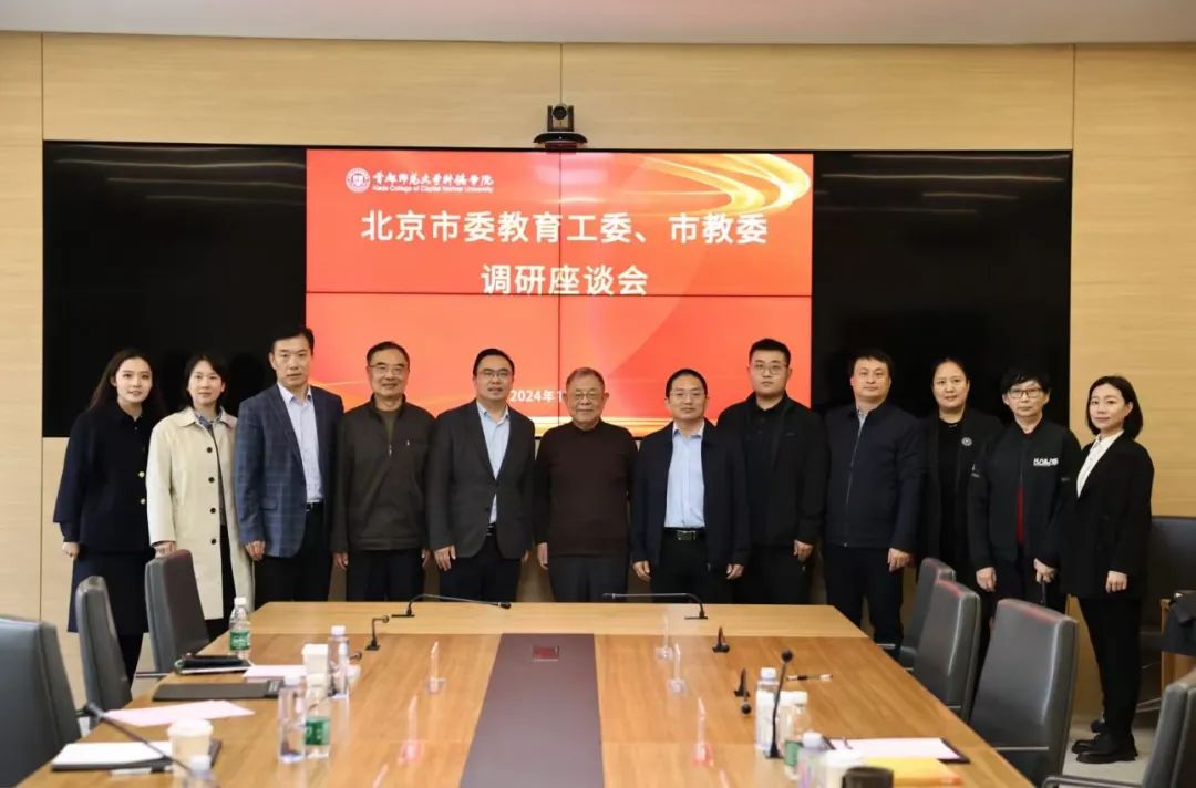 11月1日,北京市委教育工委組織二處處長杜建峰,市教委民辦教育處處長馬馳知,市教委民辦教育督導專員鄭文堂,市教委民辦教育處干部曾令萱,市教委民辦教育處干部傅泓源一行蒞臨首都師范大學科德學院開展調研。首都師范大學科德學院董事長李寶山,校長王萬良,黨委書記兼常務副校長徐振劍,黨委副書記、副校長陳永俠,副校長周瑛,校長助理趙飛,學校辦公室主任盛碩參加座談交流會。