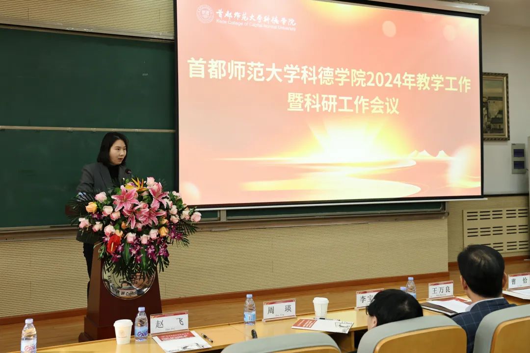 教務處、科研處處長曹恰在科研工作報告中,回顧了近四年學校學科建設和科研工作的成果。學科專業建設質量提升,多個專業成為北京市一流本科專業建設點;師資隊伍建設不斷優化,多名教師獲榮譽;科研水平上新臺階,獲批多項省部級以上項目,成果豐碩;科研為社會服務效果顯著,產學研合作深入推進;以質量為導向的科研政策體系持續更新。曹恰處長也指出了當前科研工作中存在的問題,并提出了下一步學科建設與科學研究工作的整體思路,包括優化專業結構、推進學科交叉融合、創新科研體系等。此外,還布置了教育工作會議和科研工作會議的討論思考議題,期待老師們統一思想、凝聚力量,共同開創學校科研工作新局面。