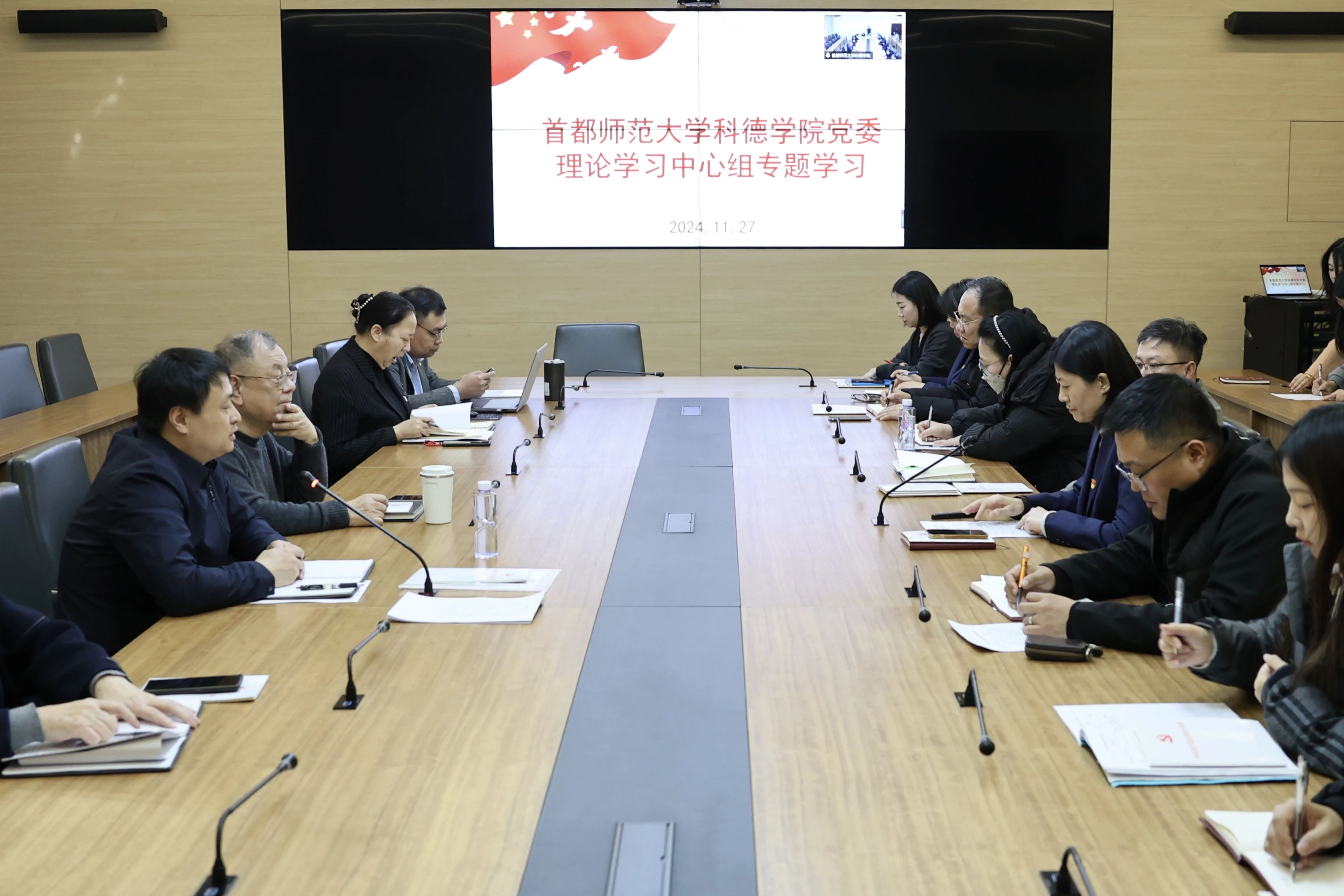 11月27日下午14:00,首都師范大學科德學院召開了一場意義深遠的黨委理論學習中心組專題學習。全體黨委委員、二級學院黨總支書記以及全體師生黨支部書記共同參與此次學習。本次學習由國際文化學院思想政治理論課教研室黃丹老師主講,學習會由黨委書記兼常務副校長徐振劍主持。