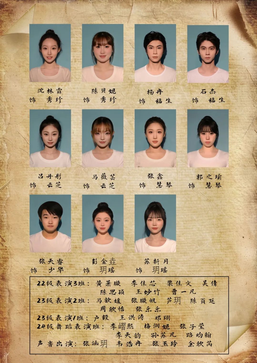 《姥姥的日記》是傳媒學院21級表演3班精心創作的原創多媒體實驗舞劇,系統整合了他們在表演、舞蹈、多媒體運用等多方面的所學技能與感悟,成為他們大學專業學習歷程中一份極具代表性與綜合性的成果展示。此劇歷經反復打磨與精心雕琢,無論是舞臺布局的精巧設計、燈光音效的完美配合,還是演員們的精湛演繹、服飾道具的精致搭配,都達到了專業領域的較高水準,充分彰顯出獨特的藝術魅力與風采。演員們憑借扎實深厚的表演功底,生動且精準地塑造出一個個鮮活靈動的角色,借助輕盈靈動的舞姿,細膩入微、絲絲入扣地傳遞出人物豐富的情感世界,使得觀眾不由自主地沉浸于劇情之中,與劇中人物同呼吸、共悲歡,深深地陶醉其間。