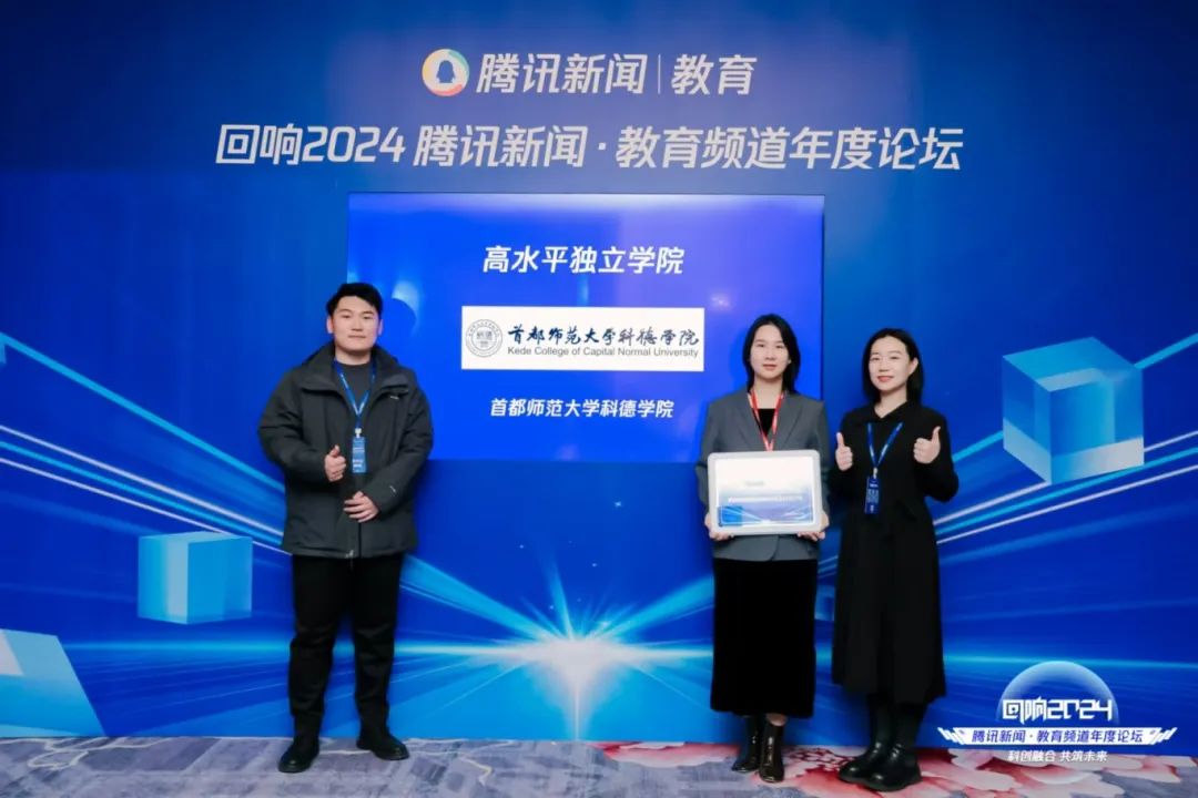 12月5日,2024“回響中國”騰訊新聞•教育頻道年度論壇在北京成功舉行。本屆論壇以 “科技賦能,創新未來” 為主題,匯聚教育界專家學者、行業精英、研究機構、教育媒體與投資人等。共探新時代教育發展路徑,深挖科技變革教育之力,遠瞻創新對社會未來的深遠意義,為教育現代化謀篇布局、注入動能。首都師范大學科德學院憑借創新多元的育人模式、深厚堅實的師資根基與深度融合的國內外優質教育資源,以及在推動應用型創新人才培育與教育行業創新發展進程中所彰顯的卓越成就,榮膺“2024年度高水平獨立學院”榮譽稱號。