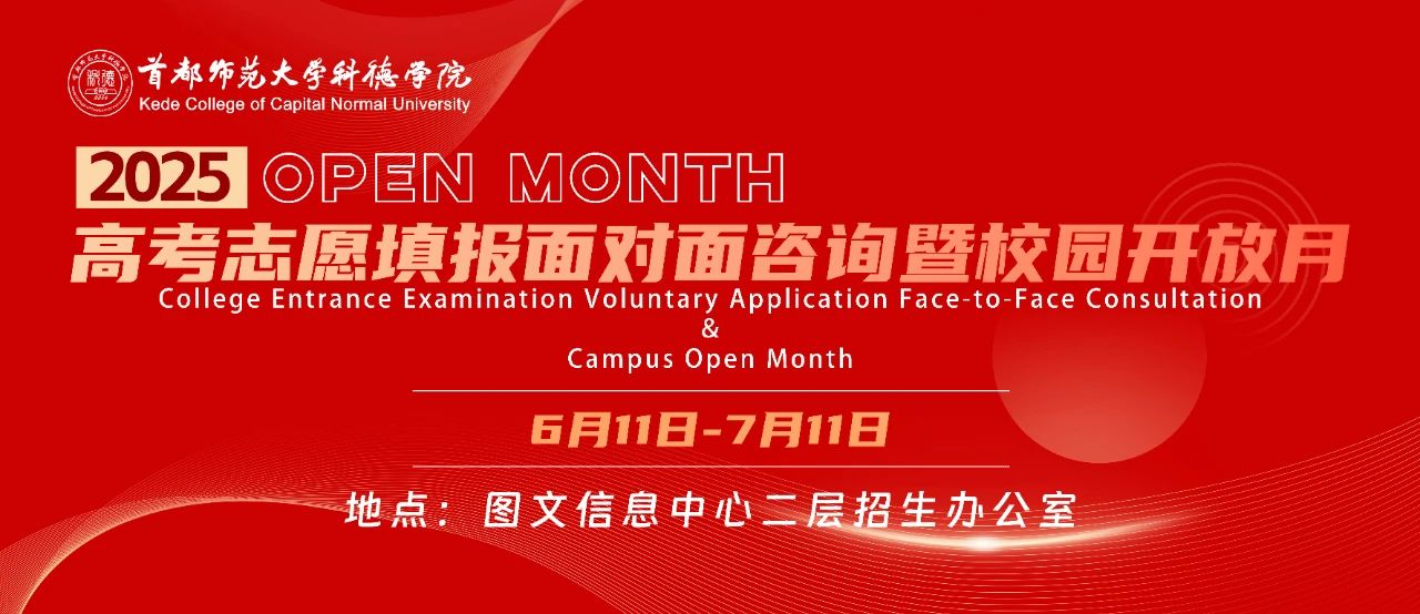 開放月期間,招生辦公室將面對面、一對一為考生和家長答疑解惑,讓家長和考生深入了解首都師范大學科德學院的辦學條件、辦學特色以及人才培養優勢、專業優勢、實習實踐、升學深造、國際交流、就業前景,幫助考生全面了解2025年招生政策、招生計劃、招生專業、招生錄取規則及志愿填報要點等有關熱點問題。