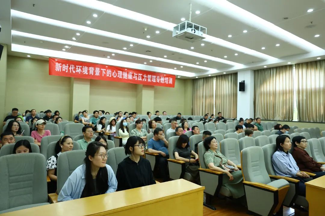 講座過程中,王劍輝教授以多個生動鮮活且貼近現實生活的案例為切入點,對心理壓力產生的影響與后果進行了深入剖析,并系統闡釋了從日常生活中壓力引發的情緒波動,到長期高壓狀態下對身體健康、人際關系造成的深層次危害,通過專業分析,揭示了心理壓力過載的潛在危害。此外,王劍輝教授還現場展示了20分鐘的催眠視頻,并運用專業知識調節現場氛圍,組織開展解壓實踐活動,將理論知識與實踐相結合,為教職工們帶來了一場兼具深度與實用性的心理健康學習之旅。