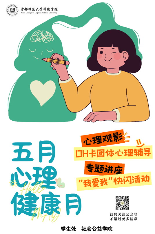 為深入貫徹落實習近平總書記關于大學生心理健康的重要指示精神,認真落實《全面加強和改進新時代學生心理健康工作專項行動計劃(2023—2025年)》的工作部署,推動五育并舉促進心理健康的理念轉化為實際行動。2025年5月首都師范大學科德學院以“我愛我·心成長”為主題,精心策劃了豐富多彩、形式多元的心理健康月系列活動。