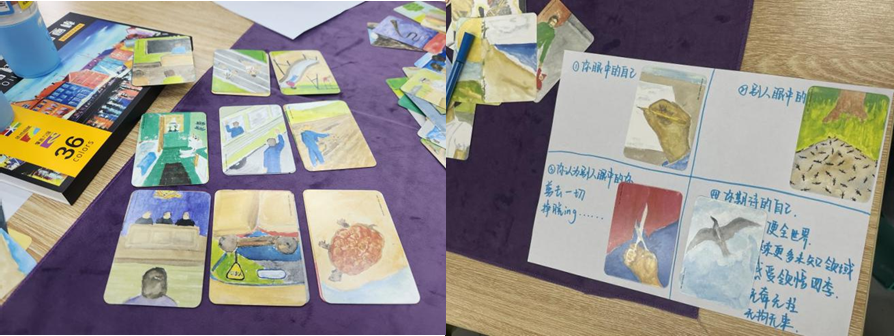 活動通過圖像與詞組的自由聯想,引導同學們進入安全表達的空間,構筑起朋輩間溫柔而堅定的連接。幫助同學們放下防備、表達感受、傾聽他人,發現內心資源釋放情緒壓力,在互動中獲得支持和力量。