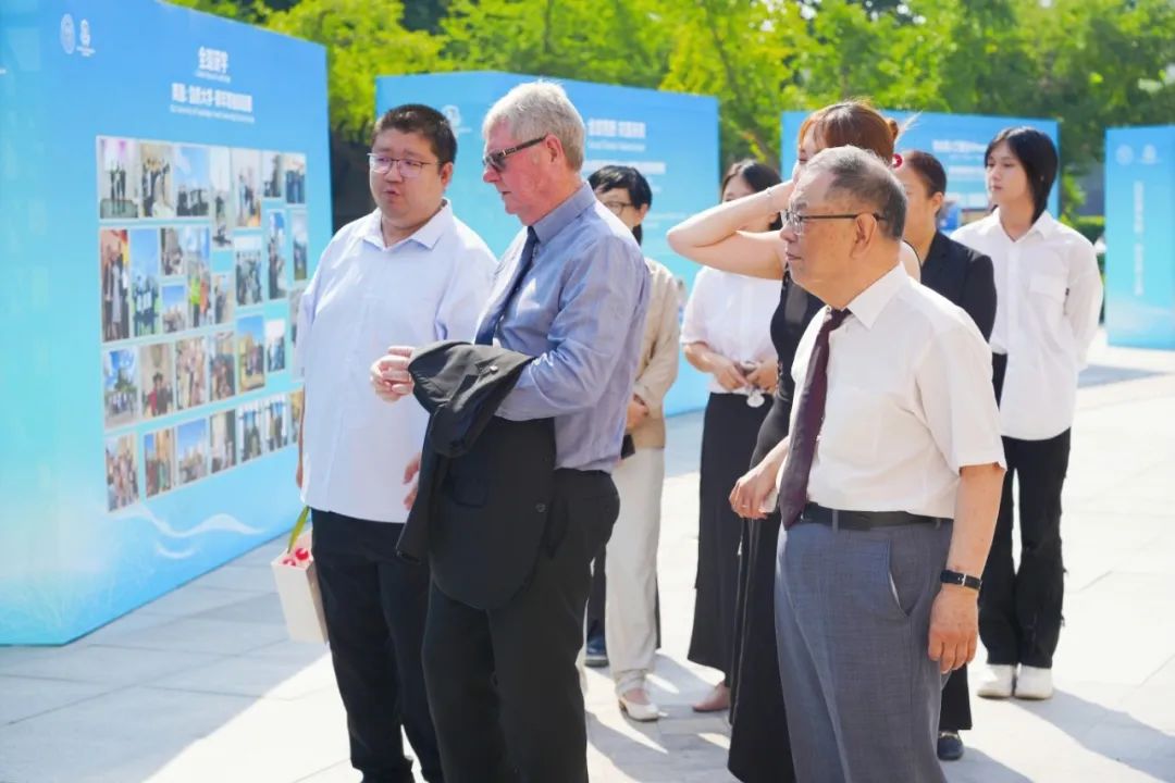 我校領導及部分師生陪同劍橋大學原副校長大衛·卡德韋爾教授參觀了科德校園,他在我校國際教育成果展區駐足,王萬良校長向卡德韋爾教授介紹了我校在國際化教育領域的廣泛活動。這些活動包括海外升碩成果以及多樣化的國際交流和國內外實習實踐的精彩時刻,生動地呈現了我校在推進教育國際化方面的不懈努力和取得的成就。