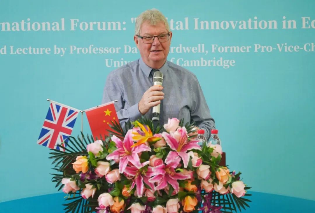 緊接著,劍橋大學原副校長大衛·卡德韋爾教授,對科德學院的熱烈歡迎表達了深深的謝意,并且為科德學院的師生們帶來了一場主題為“教育中的數字創新”的精彩主題講座。在這場講座中,大衛·卡德韋爾教授深入地闡述了數字時代如何從根本上重塑了高等教育的面貌。他從多個角度出發,詳細地講解了課程創新、研究模式的轉變、大學使命的改變以及劍橋大學在數字創新方面的實踐和成就。他強調了在全球化鏈接的世界中,大學如何通過這些變革性的變換來引領時代的潮流,以及如何在這一過程中保持其教育和研究的卓越性。