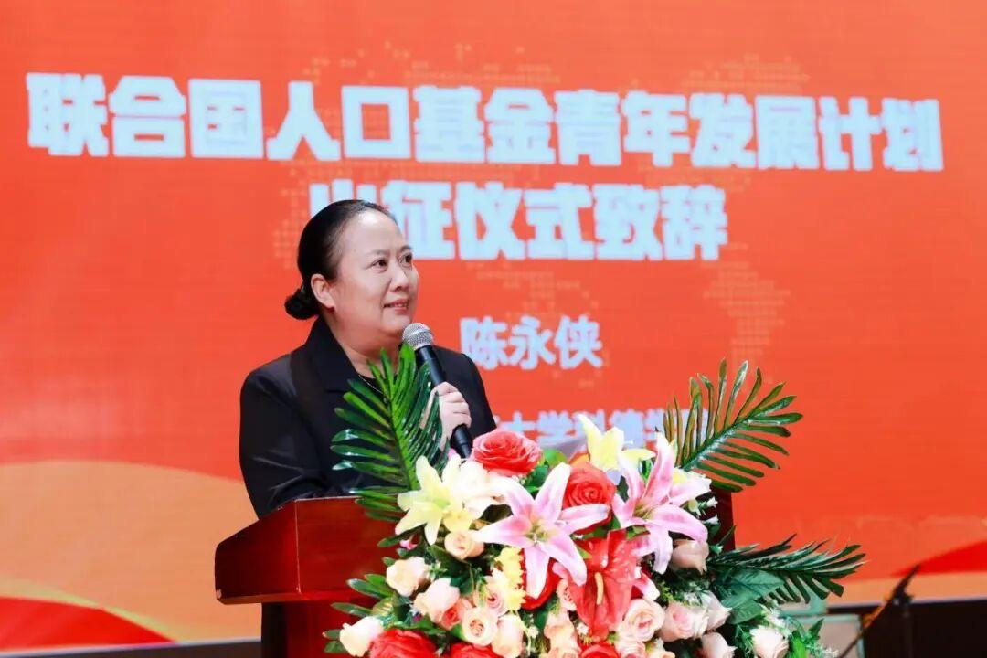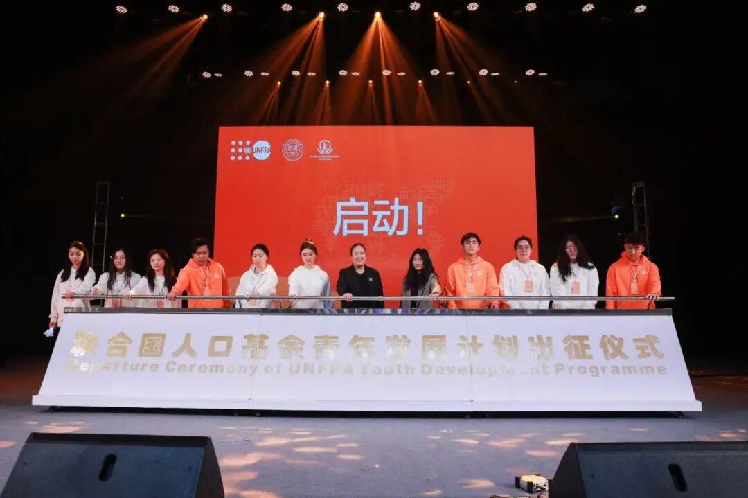 隨后,激動人心的出征啟動儀式將現場氣氛推向高潮。陳永俠副校長與聯合國人口基金UPower計劃項目負責人楊欣怡女士,以及包括廖雨嘉在內的十位即將赴瑞士日內瓦與丹麥哥本哈根參與聯合國人口基金歐洲實習交流項目的青年榜樣影響力校園大使共同登臺,在全場觀眾的見證下開啟這一光榮時刻。這不僅是對學子出征的鄭重祝福,更展現了我校為學子搭建國際舞臺的辦學成果,彰顯了我校推動青年參與全球事務的決心。