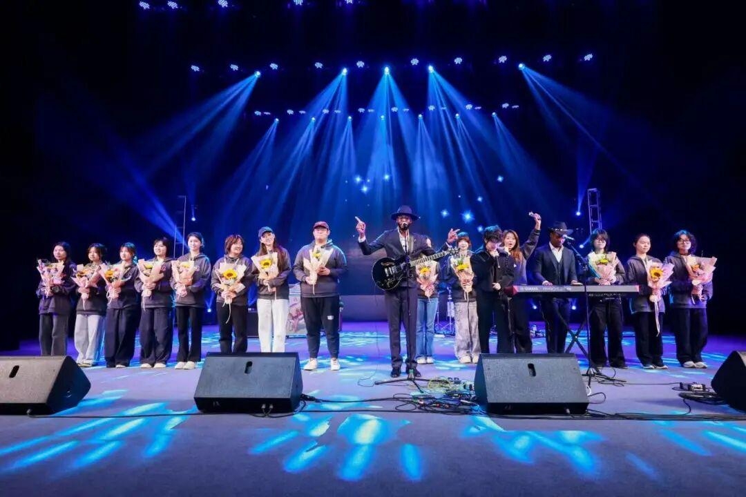 儀式現場的藝術表演環節,同樣融入濃厚的國際化元素。十位校園大使與Voguish樂隊共同獻唱《夜空中最亮的星》,用歌聲傳遞跨越國界的希望與夢想;我校第十四屆UPower計劃校園大使候選人、2021級優秀國際班畢業生林奕,也與Voguish樂隊聯袂演繹《Memories》,以溫暖歌聲展現科德學子的多元藝術素養與國際視野。此外,Voguish樂隊、二區六樓Moonage樂隊輪番登場,以多元音樂風格打造了一場融合藝術與理想的青春盛典,這既是我校豐富國際化校園文化生活的縮影,更是以藝術為紐帶推動全球青年對話、踐行國際化辦學理念的具體實踐。